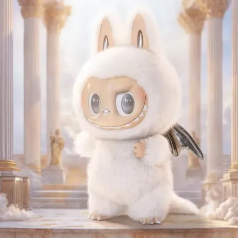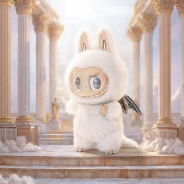 Un peluche ufficiale POP MART che unisce la tenerezza inconfondibile di Labubu con un design angelico ed elegante, perfetto per bambini, appassionati e collezionisti.
